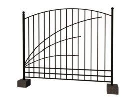 Вы можете комбинировать материалы. К профильной трубе подходит профнастил, элементы холодной и горячей ковки, поликарбонат, хорошо смотрится в сочетании с кирпичными столбами, но легко монтируется и на простые врытые в землю металлические трубы.